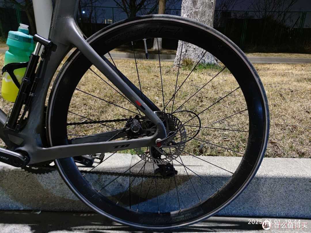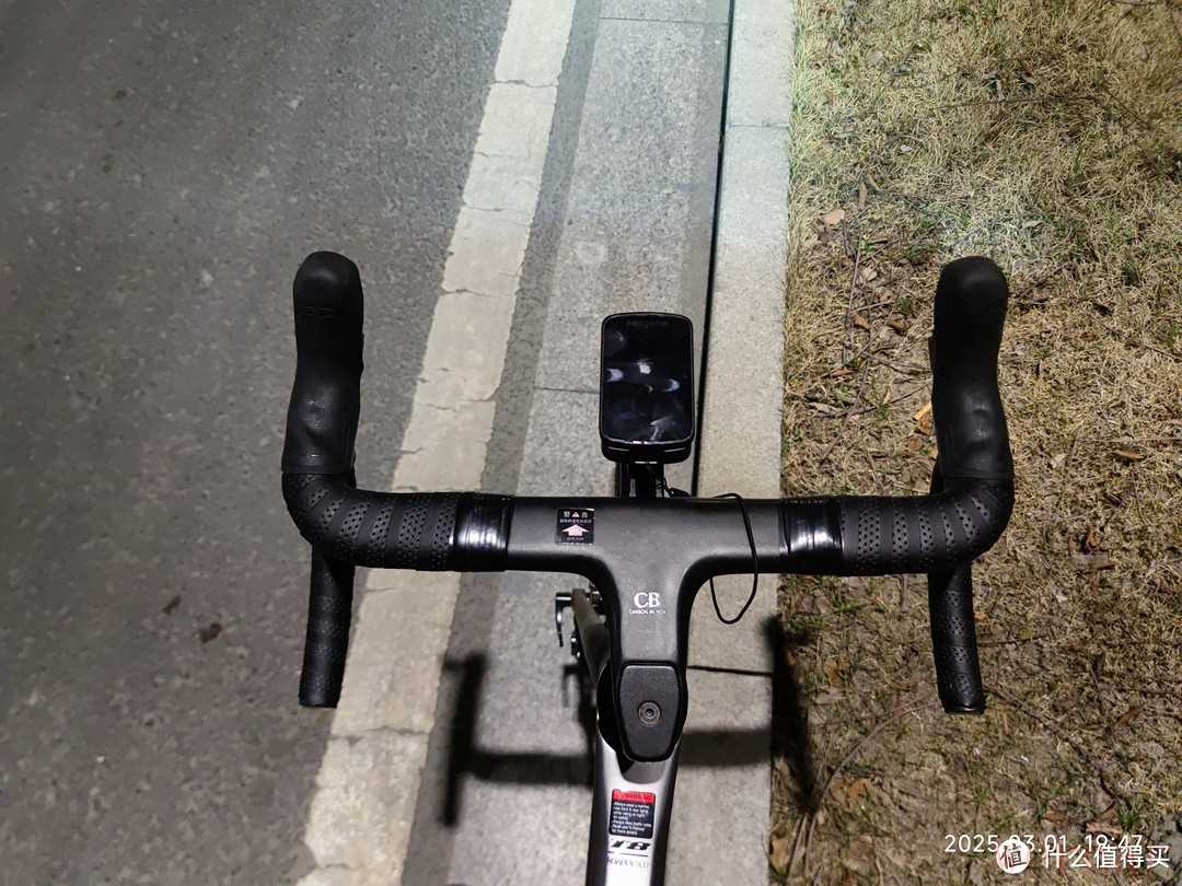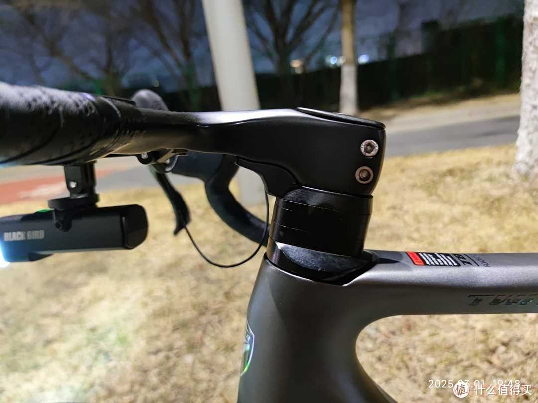 之前没有骑过公路车,总感觉公路车的车把看起来很怪异,当我真正的自己骑上去后,才发现这个车把设计真的非常的舒服。这个车把也是碳纤维材质,属于是破风一体弯把(这是我同事和我说的,其实我也不懂是什么意思)。