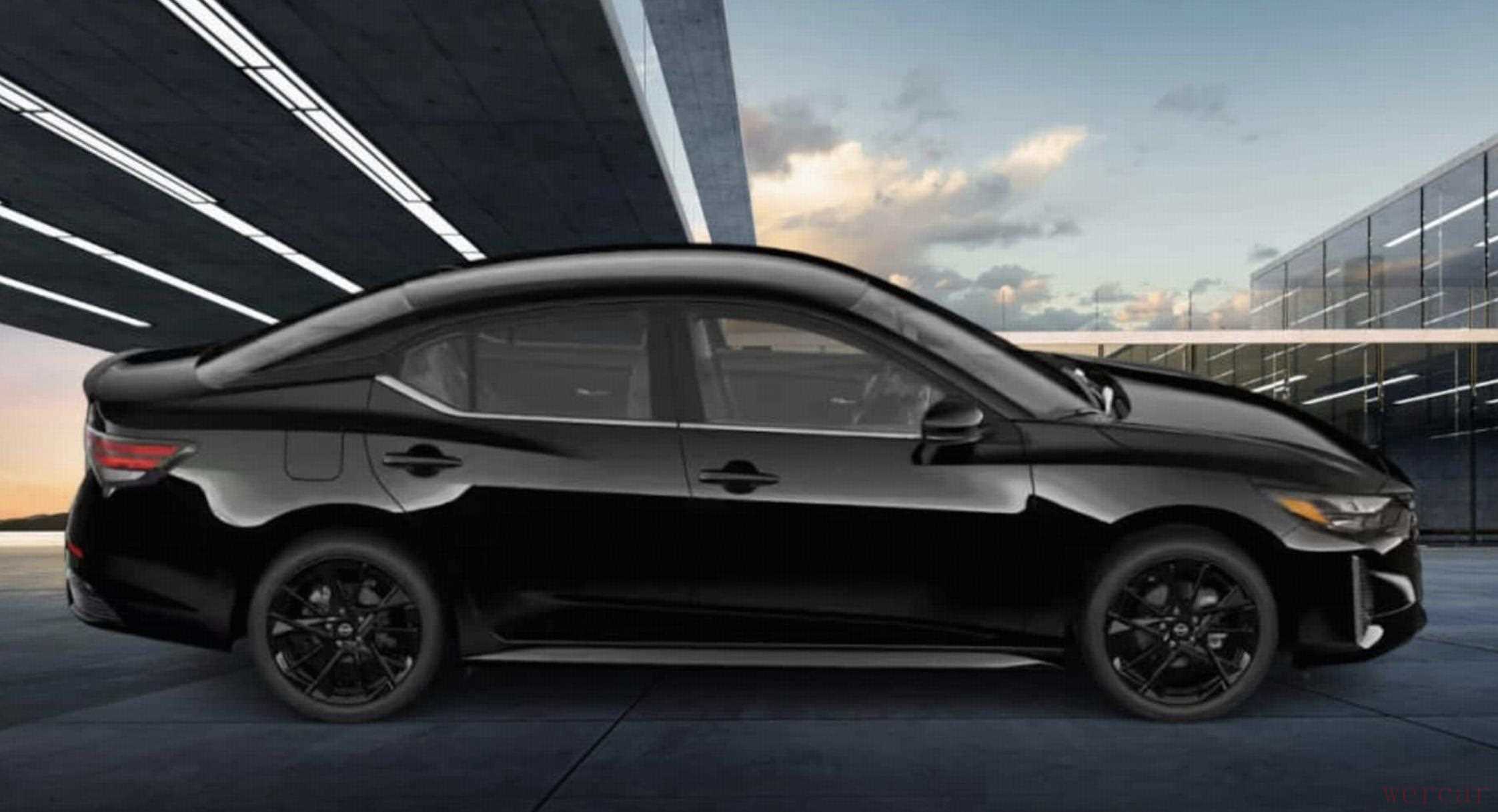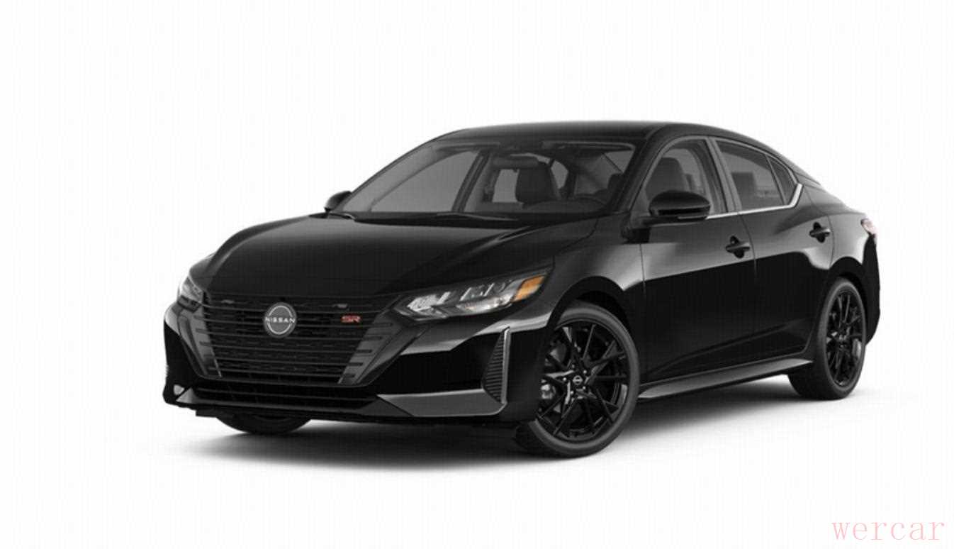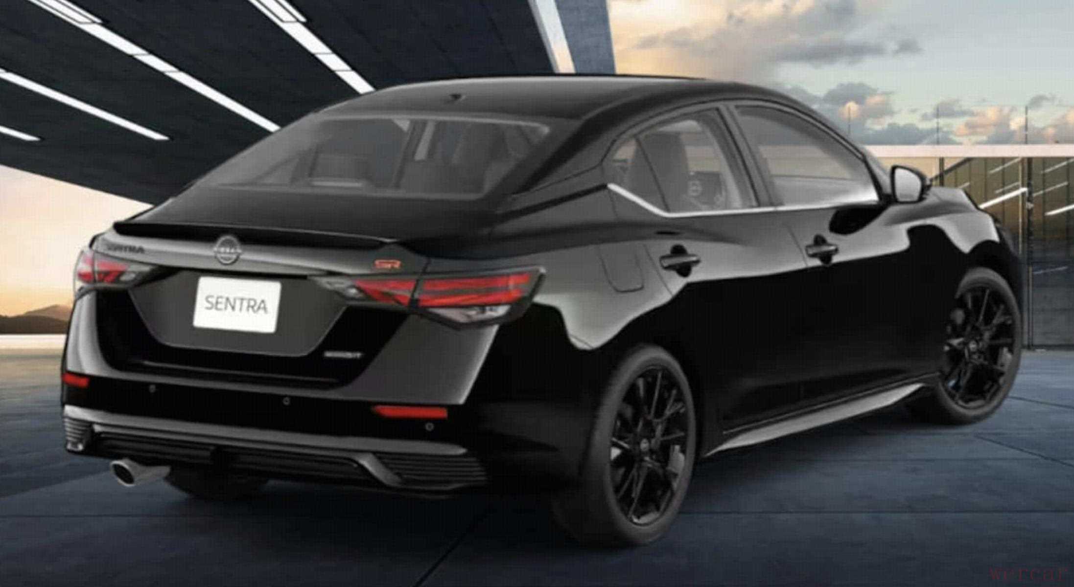 结合官图来看,日产Sentra SR Nightfall基于日产Sentra SR车型打造,采用夜幕黑车身配色,配备18英寸黑色轮辋,并且进气格栅边缘饰条以及Sentra标识进行黑化处理。