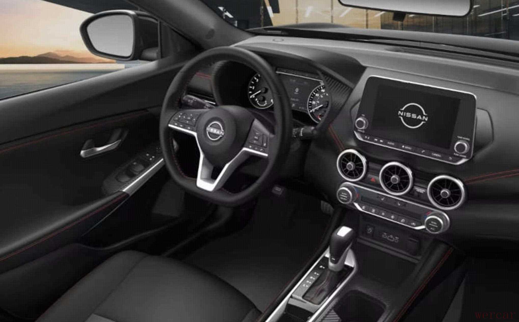 内饰部分,日产Sentra SR Nightfall同样以黑色调为主,设计有8英寸中控屏和7英寸仪表盘,采用三辐式方向盘,配备有Android Auto/Apple CarPlay手机互联、8扬声器BOSE音响、前排座椅加热、双区空调、天窗、倒车影像等配置。