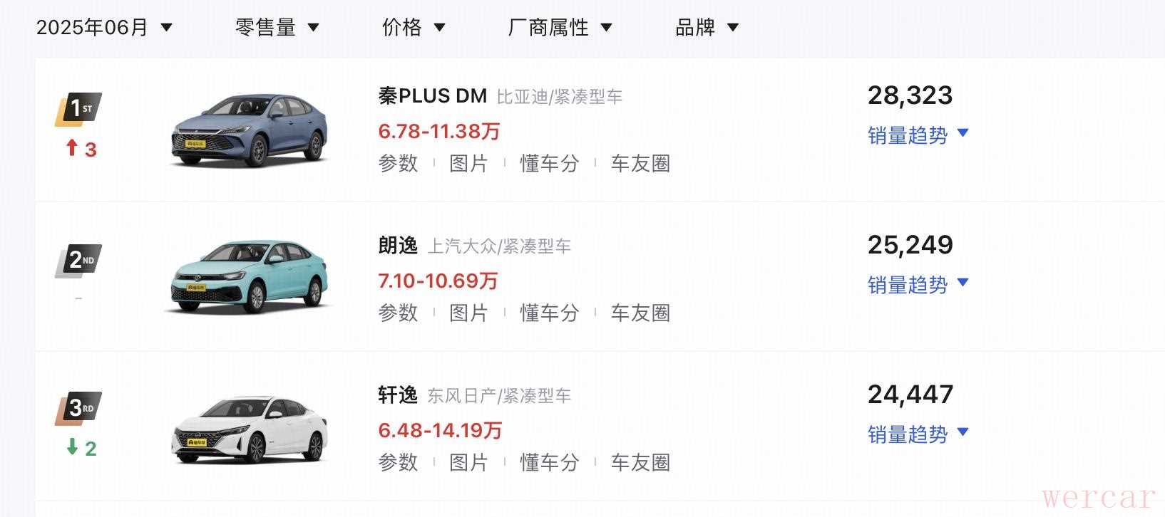 作为日产旗下的紧凑型车,目前Sentra已经发展到第八代车型。在国内市场,东风日产轩逸采取新老同堂的销售策略,指导价格区间7.99万-17.49万元,同级车型包括上汽大众朗逸(指导价格区间7.999万-15.19万元)、一汽丰田卡罗拉(指导价格区间11.68万-15.58万元)等。结合销量数据显示,今年6月,东风日产轩逸销量为24447辆,销量在该级别排名第三位。更多消息,懂车帝将持续关注。