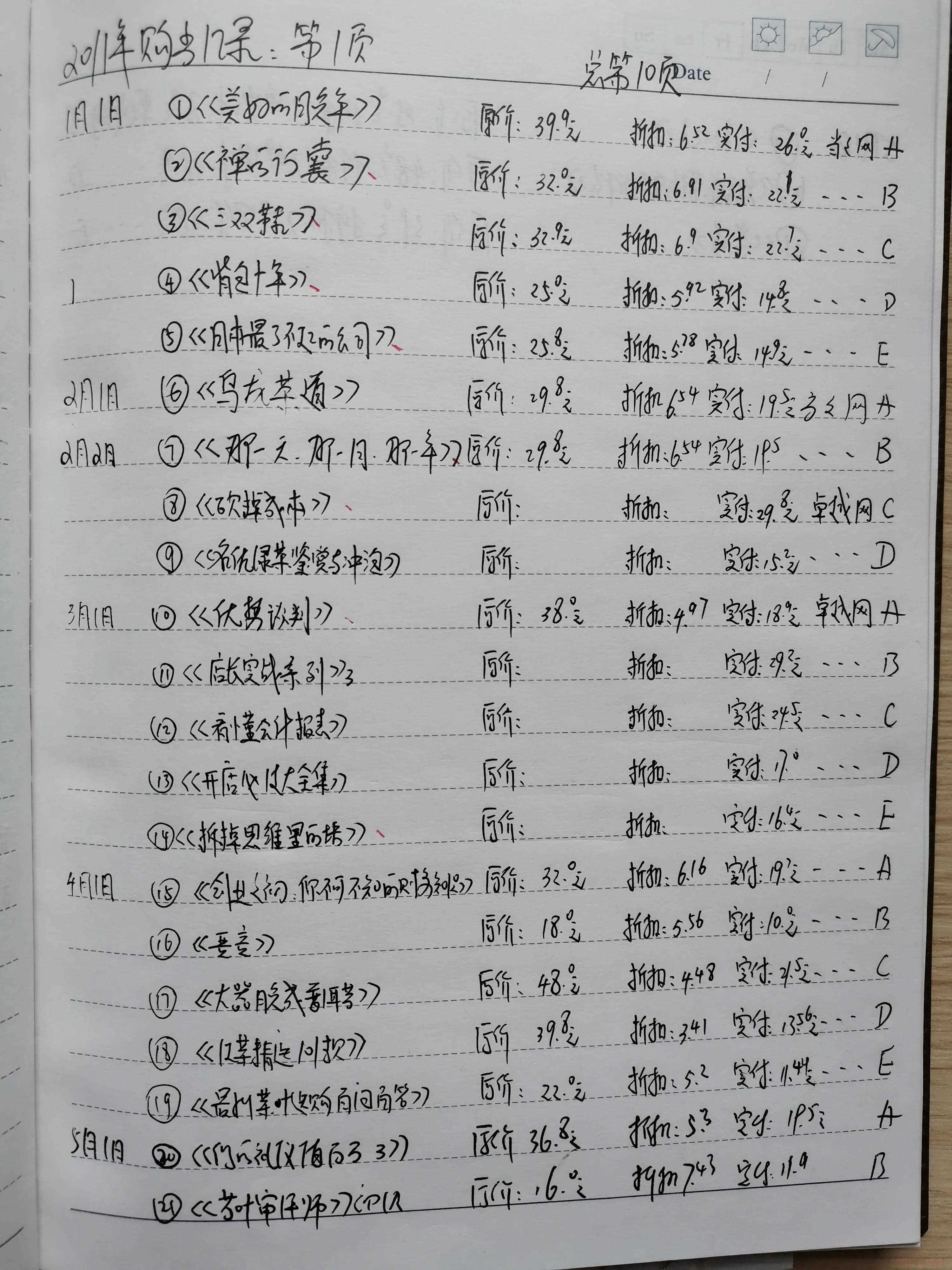 2011年的清单到5月份就没有继续了,原因是当时从原单位停薪留职后,去了市里生活。诸多的生活轨迹在这个居所就停止了,而新的购书清单又在市里新的住处开始记录了。