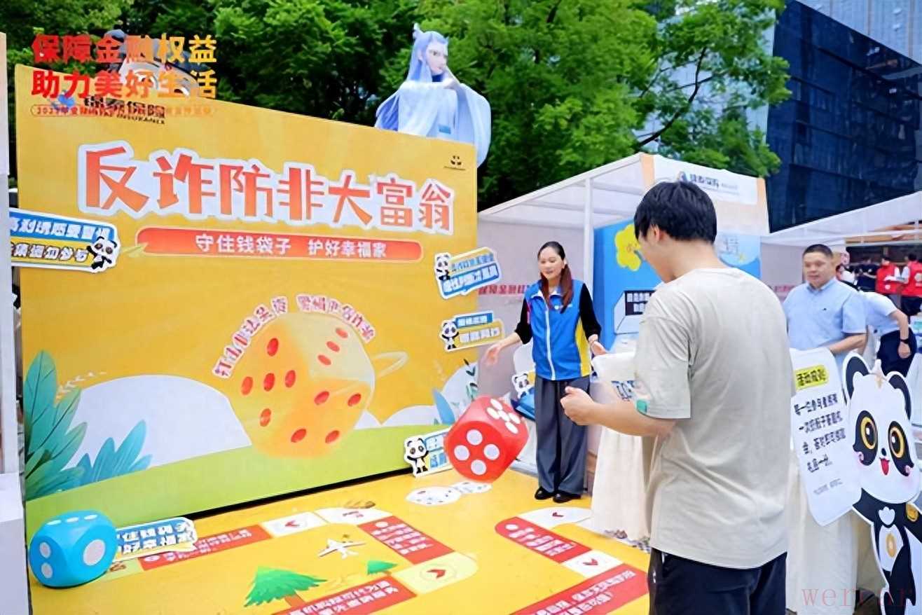 开展趣味活动增强宣传效果。四川分公司组织开展“风险提示送上门”金融宣教活动,活动设置金融知识互动体验区,推出线上扫码答题竞赛、实体转盘答题抽奖,开展“防非反诈大富翁”情景游戏,吸引群众积极参与,在互动中学习防诈知识,实现“玩中学、学中记”。贵州分公司在当地社区开展金融知识普及宣传,设置“包你懂金融,答对赢好礼”“明察秋毫,晓八权”“墨舞金融安全,笔绘风险防线”等活动环节,群众书写反诈口号、金融知识小贴士,以趣味形式激发群众学习金融知识的积极性。湖北分公司、云南分公司在互动环节准备了定制小礼品,吸引大量市民驻足咨询、参与金融知识问答。