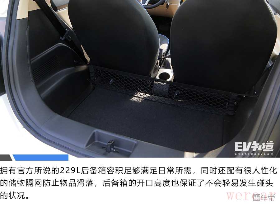 小结:作为一款两座的微型车,车内的乘坐空间不会显得压抑,储物空间也称得上够用,在载人载物方面可以满足用户正常代步所需。