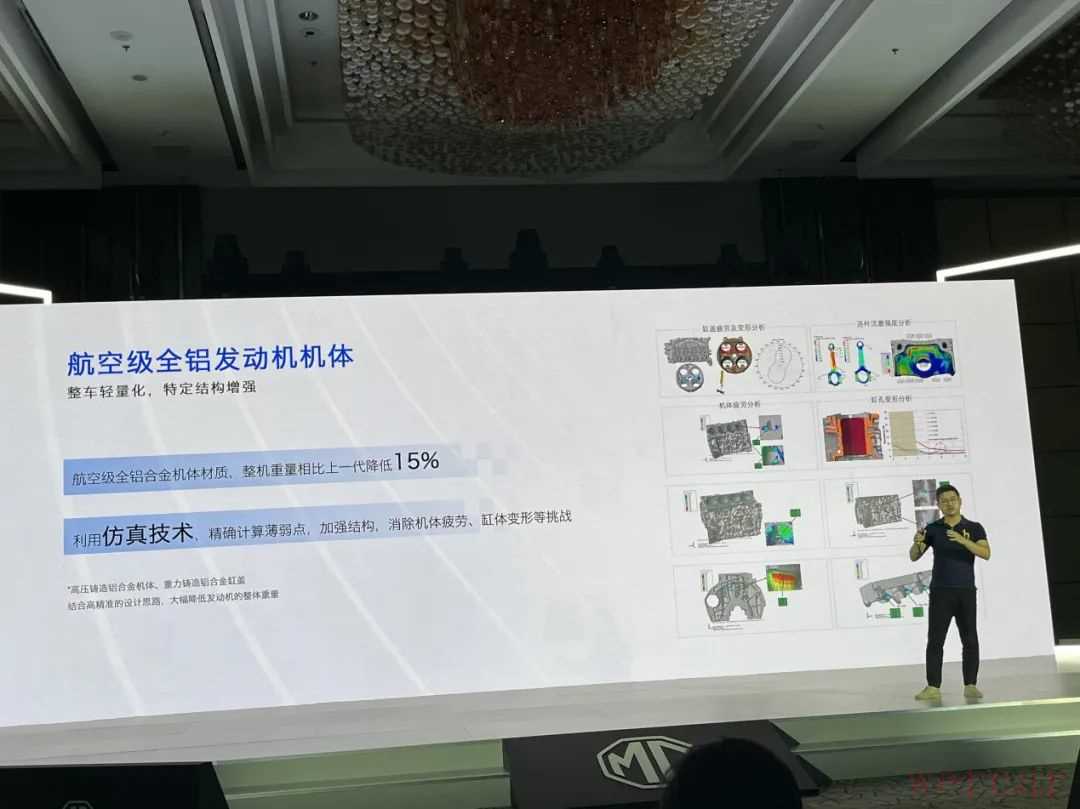 航空级全铝合金机体材质的使用,如高压铸造的铝合金机体和重力铸造的铝合金缸盖,让发动机整机重量相比上一代降低15%。同时,上汽利用仿真技术精确计算薄弱点,并加强结构,预防机体疲劳、缸体变形。