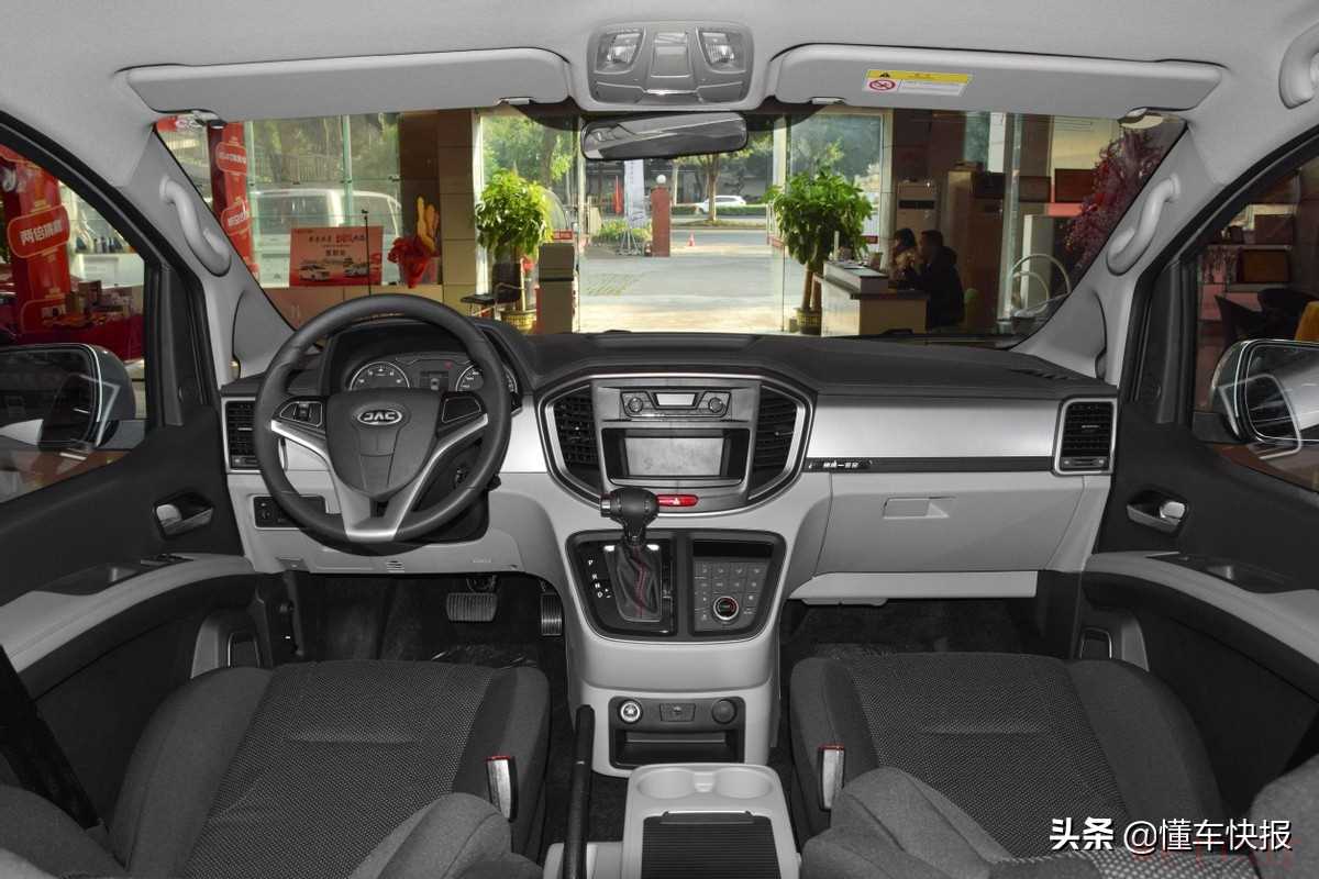 作为一辆偏重全场景出行的MPV,瑞风M4自动商旅版的内饰以实用为主,并没有太突出的设计。在订车时,可以通过瑞风汽车App选配带有J-ConNet智云行车系统的中控触摸屏,内置导航、蓝牙、语音控制、倒车影像等功能。