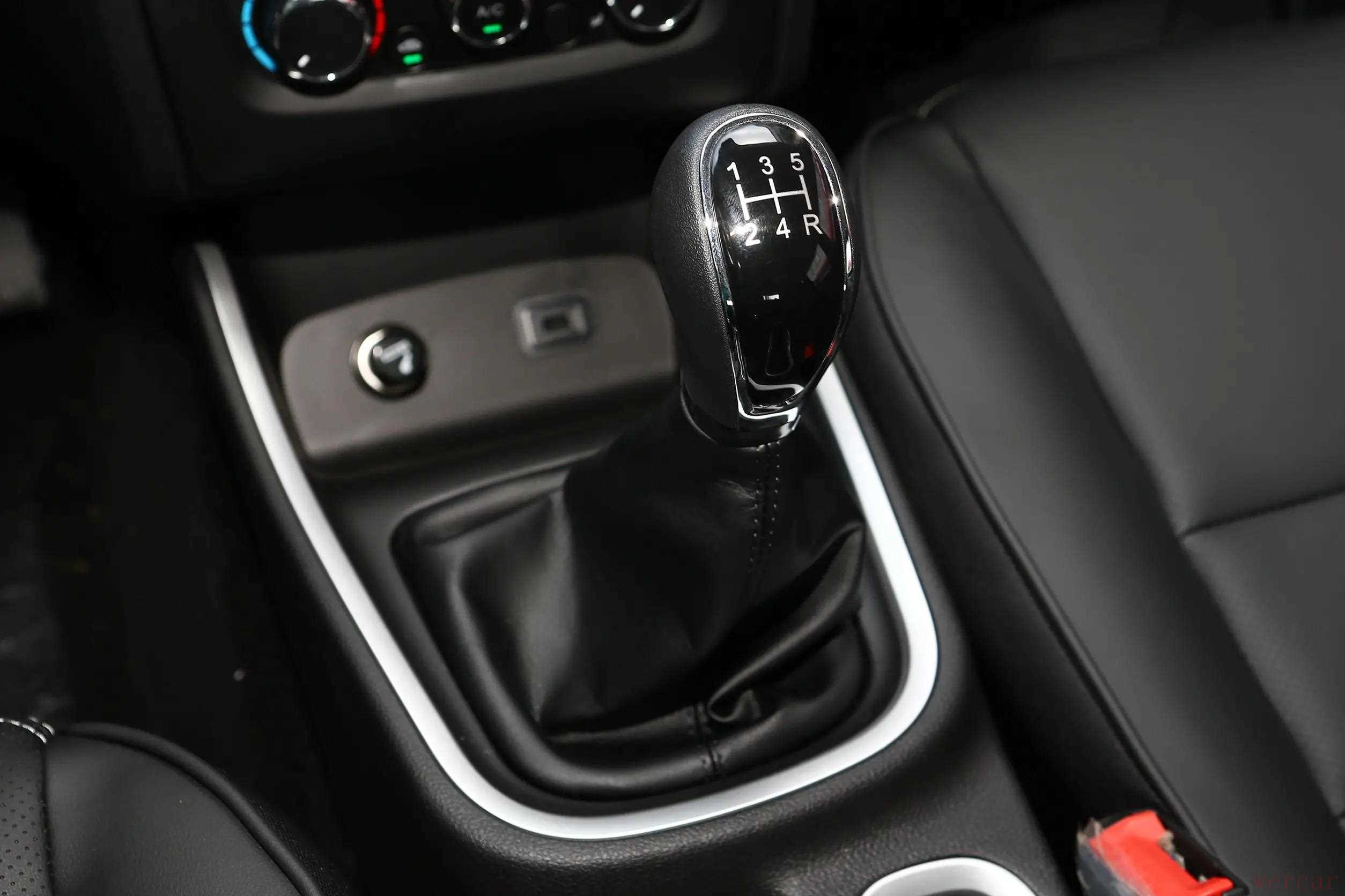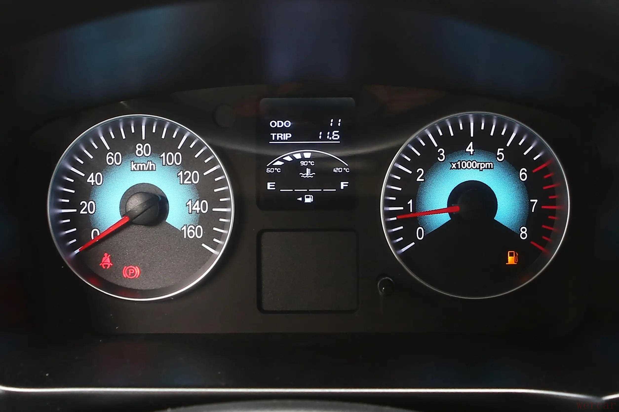 塑料三幅式方向盘,不支持控制和调节。机械指针仪表盘,与单色小屏组合,信息简约直观。