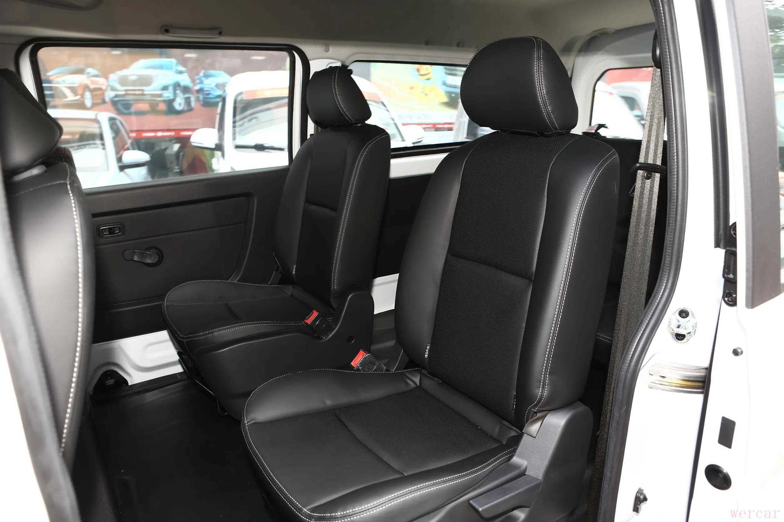 金海狮M 2022款 熊猫版 1.5L 旅行狮客车 7座版本,座舱采用仿皮座椅,布局2+2+3,座椅可以手动前后移动和靠背角度调节,上方设计有空调出风口。座椅舒适度不错,填充物很厚实,包裹感尚佳。
