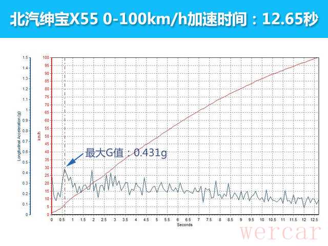 在加速测试中,由于CVT变速箱的保护机制,发动机转速被限制在2500rpm。整个起步过程波澜不惊,前轮没有发生任何打滑的现象。车头上扬的现象并不算明显,最终测试成绩12.65s。