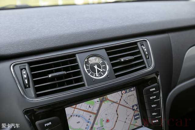 中控台顶部的空调出风口中央布置有一枚带背光的石英表。