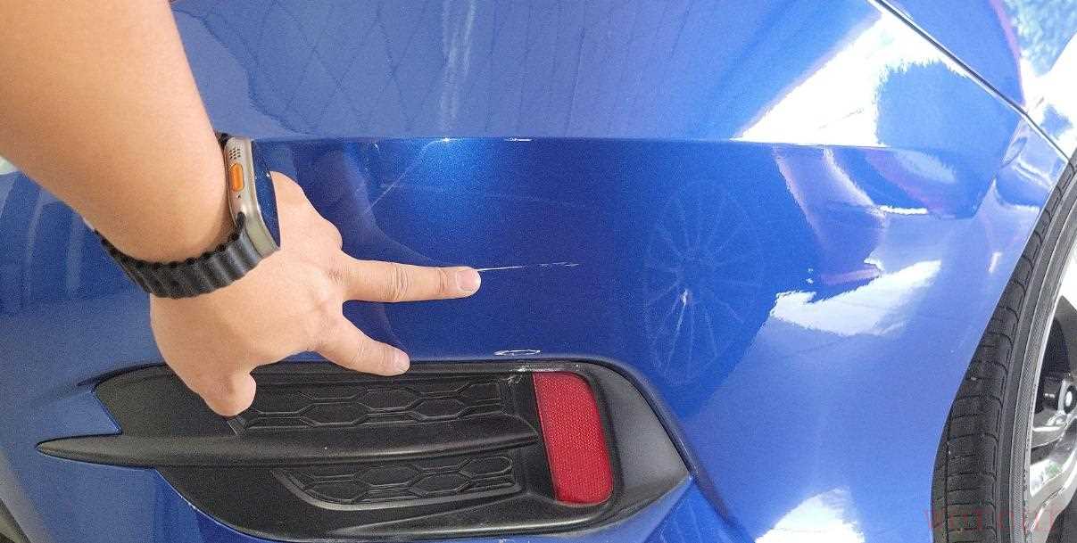后杠是有喷漆修复过的,表面现在还有剐蹭的痕迹。