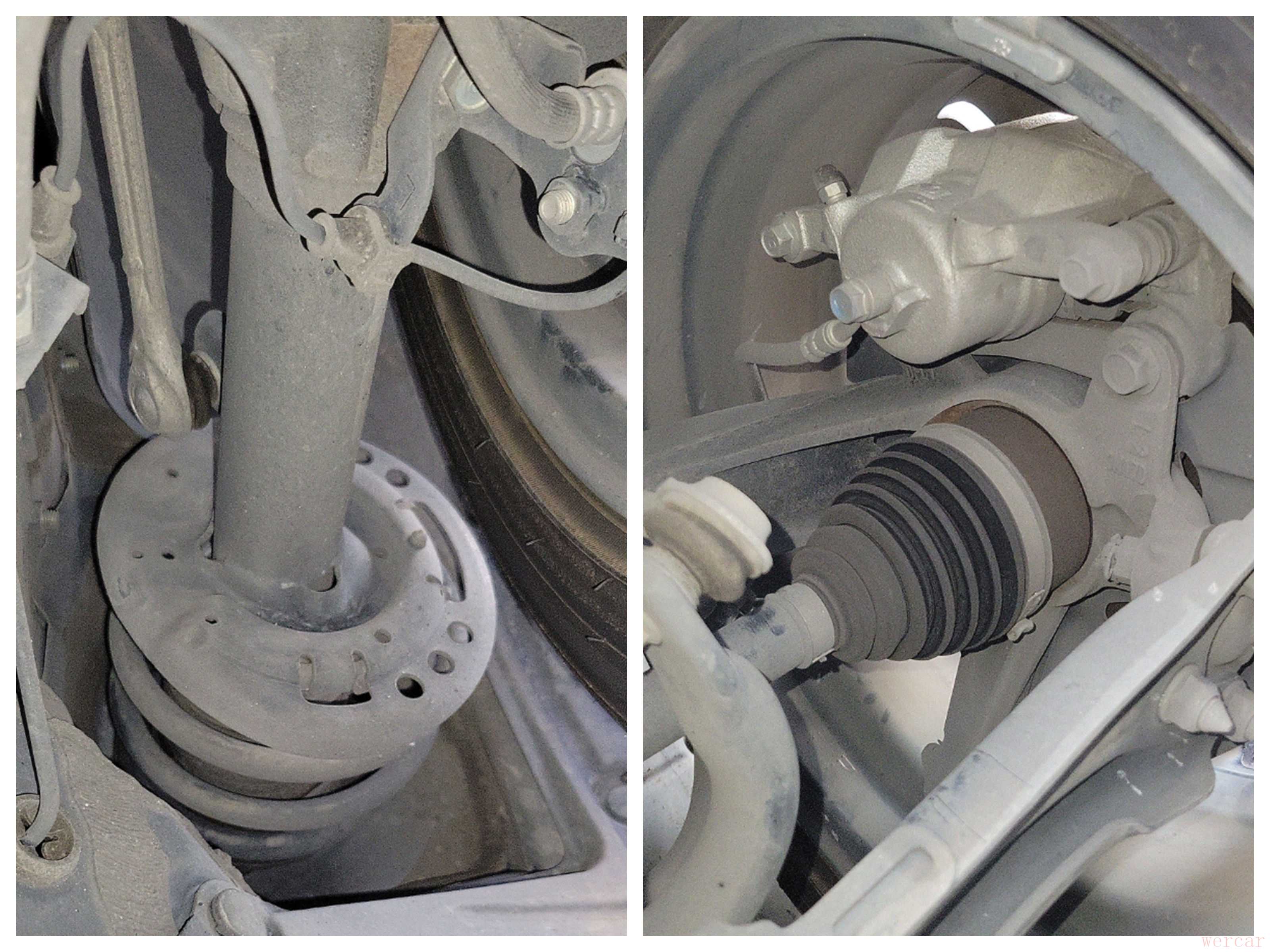 看了悬挂的胶套以及减震器没有发现破损渗油的情况。