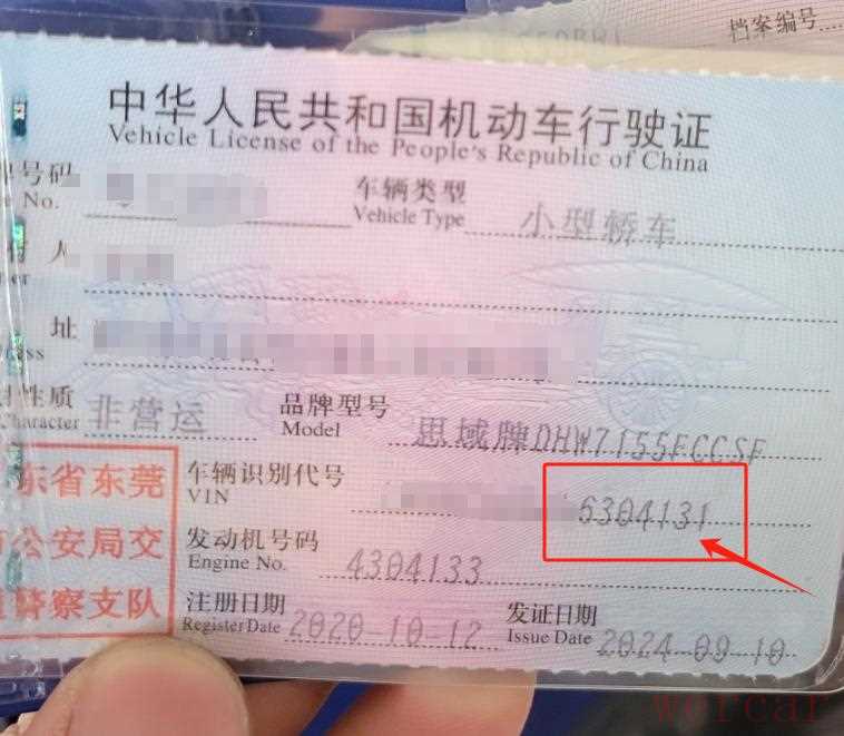 但行驶证上面的车架号后六位则是304131,明显和车门上的不一样了。所以可以确定车门是更换过的,而且更换的还是拆车件,原因不用我再详细解释了吧?