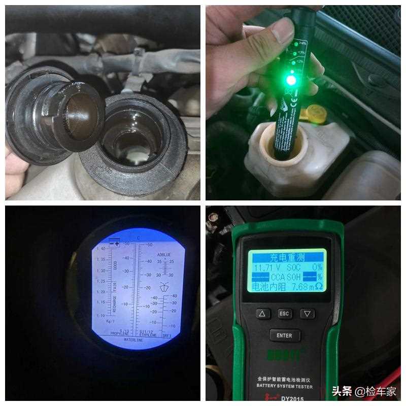 接下来拿出电瓶检测仪、防冻液冰点检测仪和刹车油笔,分别检测对应的电油液,除了电瓶亏电严重外,其它油液都在最佳工作状态!
