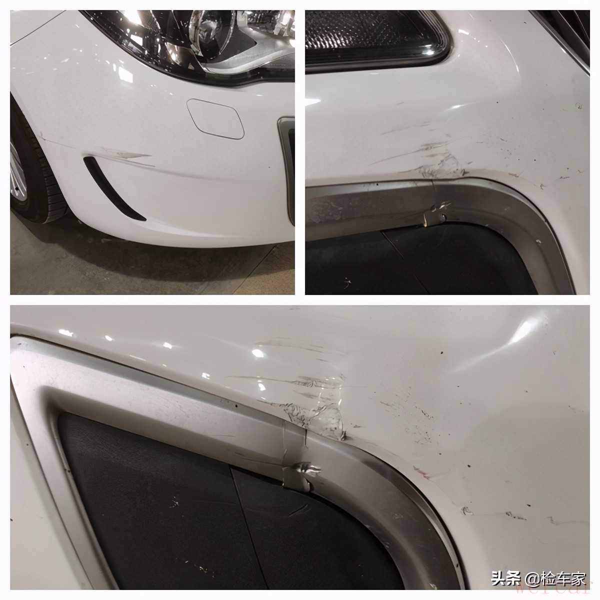 前保险杠有三处剐蹭,前中网镀铬饰条都刮破了,看了前杠的固定螺丝有拆装特征,与叶子板拼接的缝隙也不均匀,判断前杠和中网有过更换。七年的车子,塑料件的破损更换也是比较常见的。