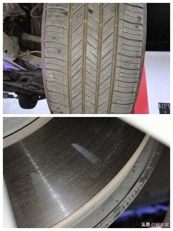 检查四轮轮胎,轮胎制造日期与车辆出厂时间有所出入,两前轮及左后轮已更换、右后轮还是原车胎,目前老化的厉害,轮毂状态良好,刹车盘片正常磨损。