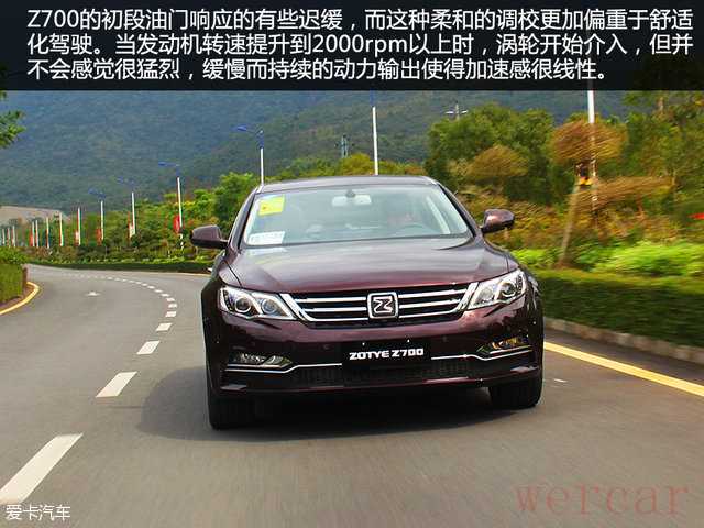 Z700的底盘调校偏向于舒适化的定位,在动力方面表现平平,没有非常强劲的动力输出,变速箱较为平顺,对于日常使用来说算是够用,同时也能够获得较好的燃油经济性。
