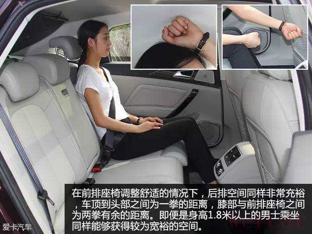 "宽度空间:" 车内宽度足够,中间乘客不会感到被挤压,横向移动也相对自如。