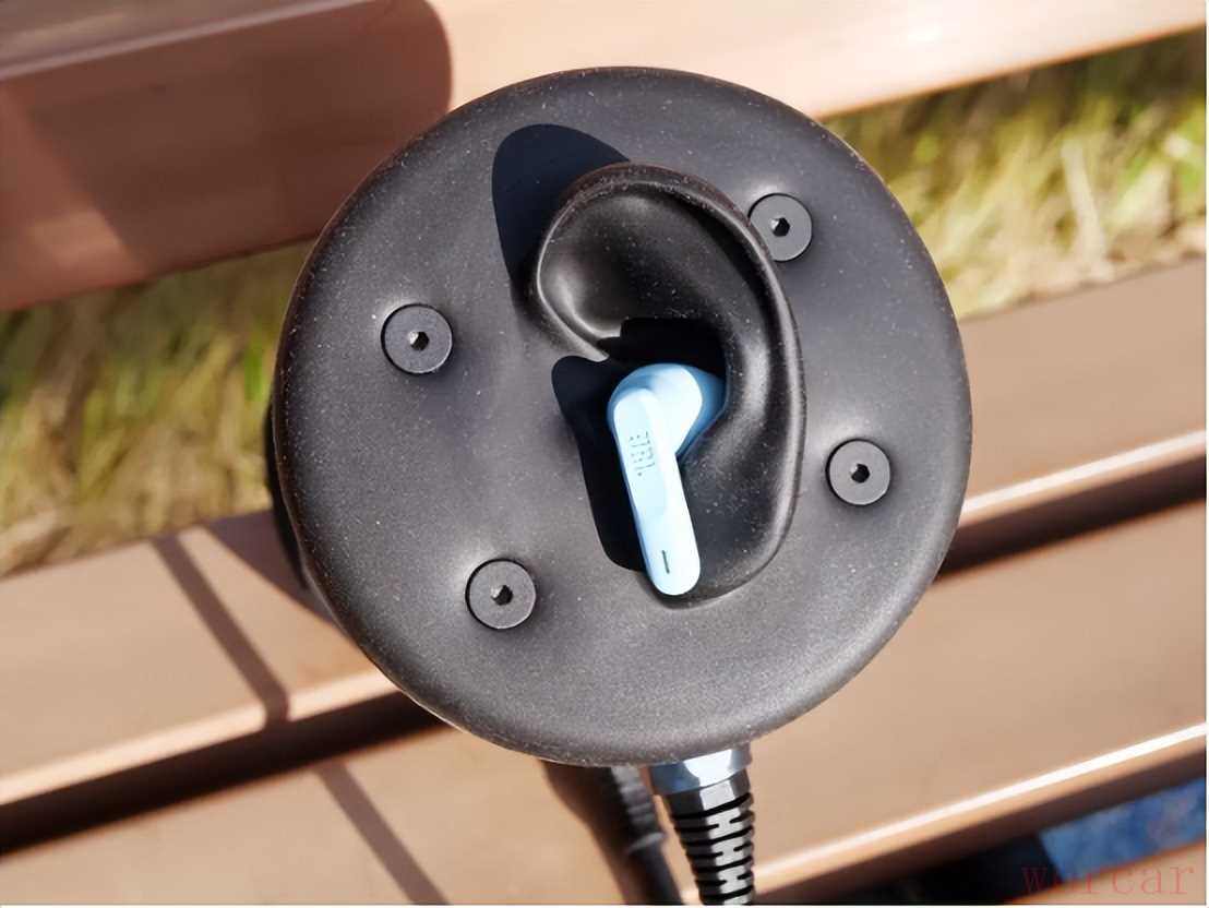 大开口的耳塞位可以让我们很方便地将耳机取出,这种半入耳式耳机在佩戴上要比入耳式的耳机更加舒适,一方面无需用力塞进耳道,不用担心耳塞部分与耳道贴合的问题,另一方面它的出声孔部分还使用液态硅胶材质,能够很好地嵌入在耳廓中,长时间佩戴也不会有不适感。