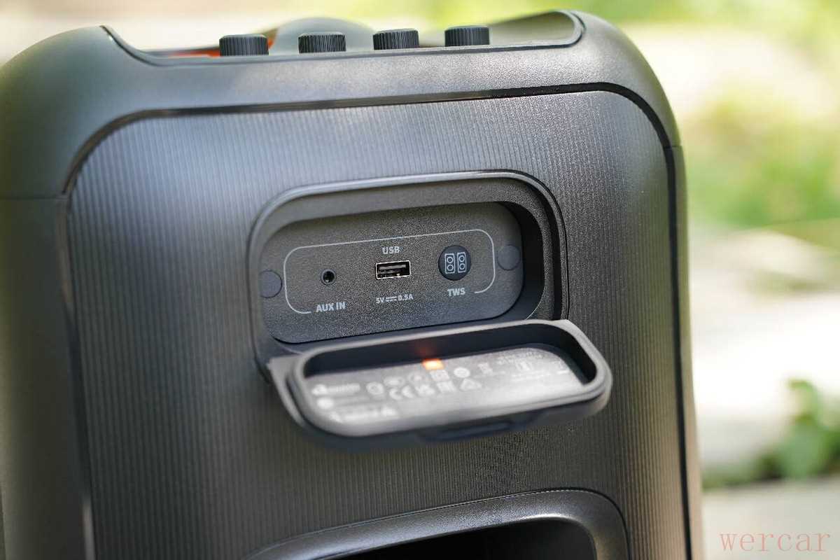 最后回到音响的配置上,它搭配了一个5.25英寸低音单元,两个1.75英寸高音单元,这三个单元组成了户外音响的发音核心,千万不要拿着你手里的随身音响来比较,一个是听个响,一个是为了在户外有更高的场景体验,这是完全不同的效果。
