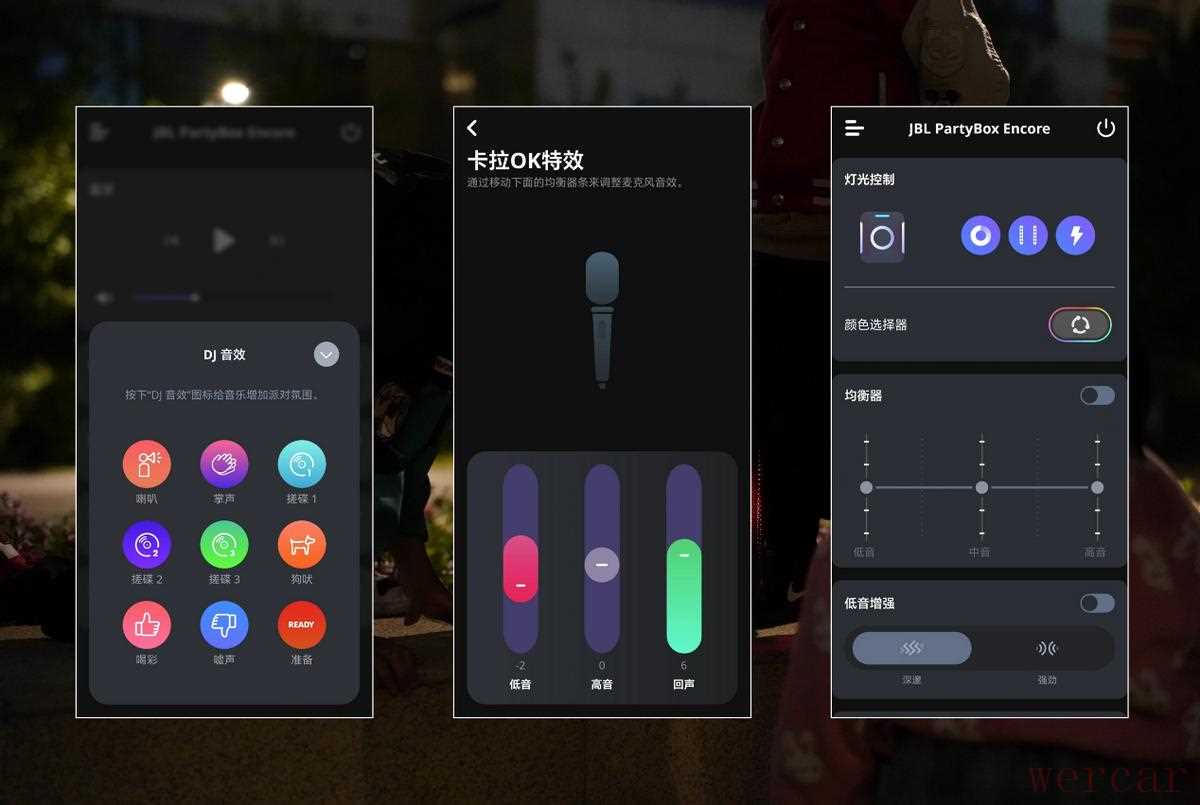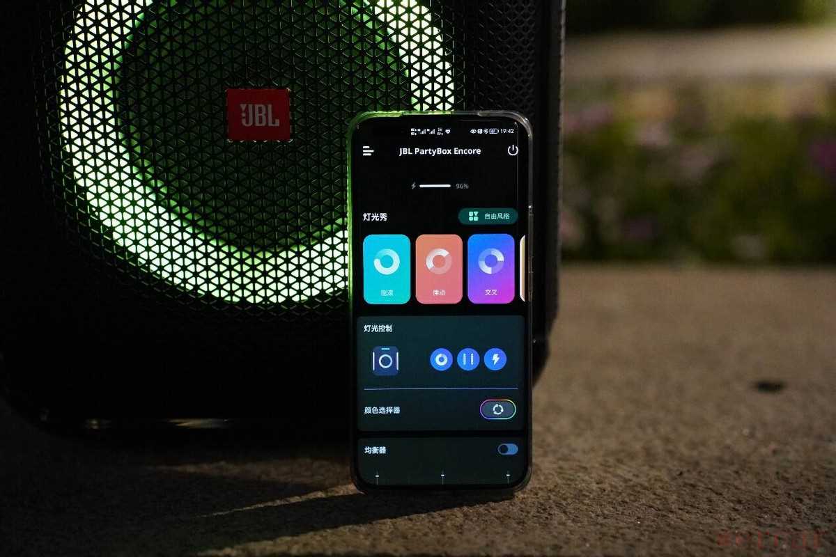 我选择它的第二个原因是它的灯光效果,通过专用APP可以控制音量、音效之外,还可以根据实际的场景不同,在律动、摇滚、交叉、涟漪、闪烁五种不同的灯光模式下进行选择,除了预设的灯光效果之外,还可以进行自由设置,假如说在播放音乐时,我们通过手指点击、长按屏幕还能实现打碟的音效感觉,非常的有意思。