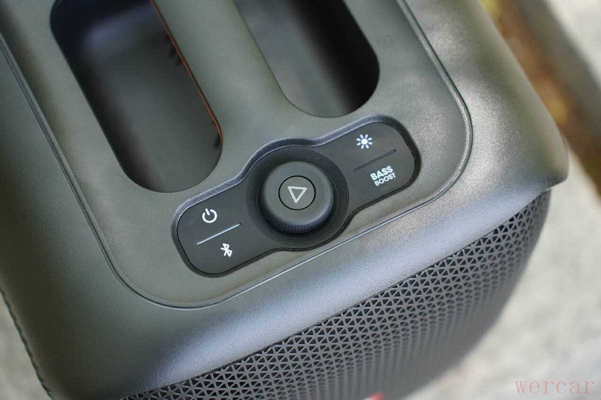 作为一款户外音响,它有着更为方便的操作体验,在顶部设置了旋钮+按键,我认为在户外场景中旋钮音量控制要优于按键控制,如果你不信可以拿起家里的电视遥控器,你会发现频繁按下的音量、节目调节按键都磨花了。