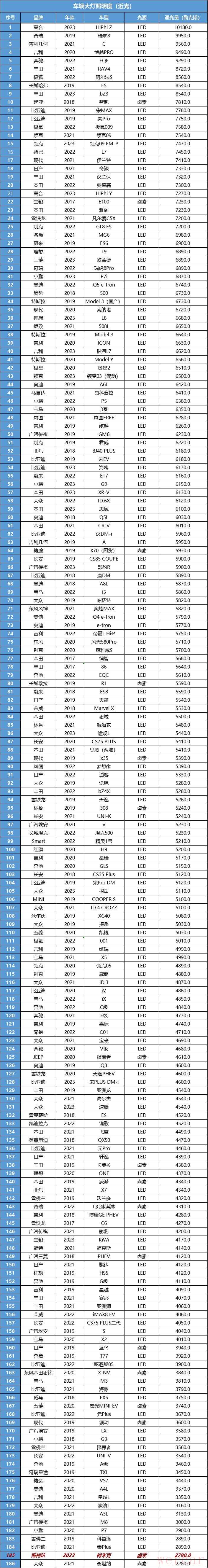 这辆车的大灯还是卤素光源,最大光照度仅为2790勒克斯,不怎么亮,和同是卤素光源的桑塔纳处于同一水平。