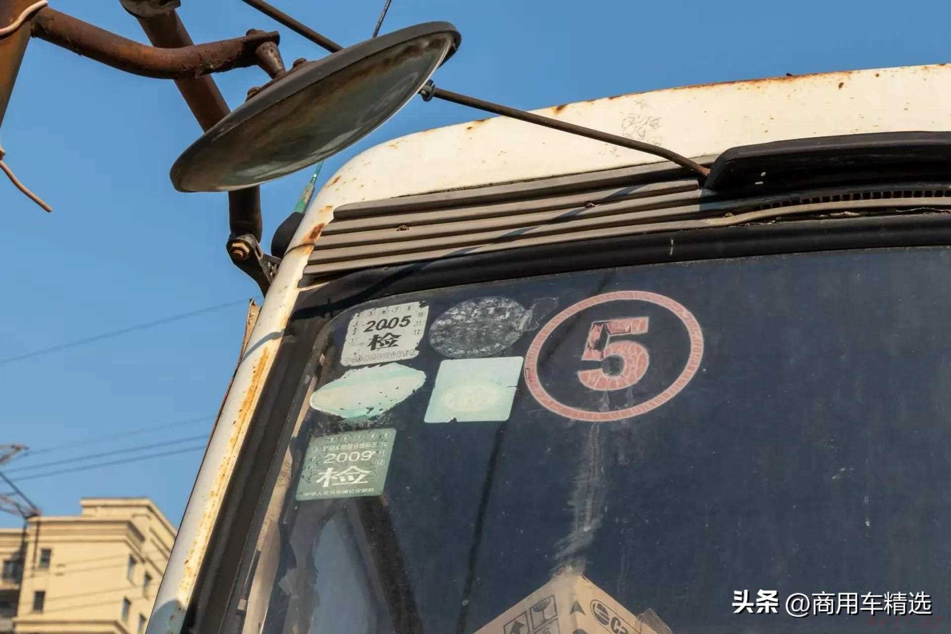 从挡风玻璃右上方的年检标识来看,最后一次审车是2009年。由于解放道依茨排放仅为欧2标准,因此在排放飞速发展的国内市场,淘汰快实属正常。