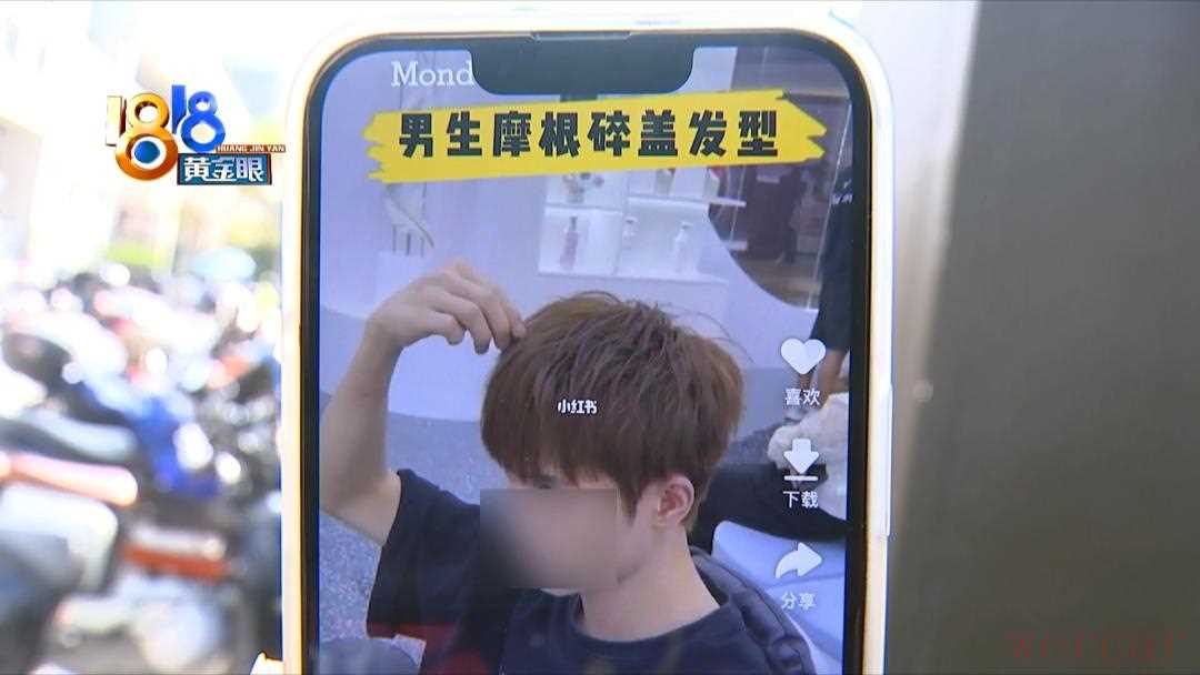 20号那天,小朱在杭州萧山这家韩尚造型烫了头发,他说当时给店员看了这张摩根碎盖发型的照片,希望对方按照图片做造型,烫的过程中他感觉有些难熬。