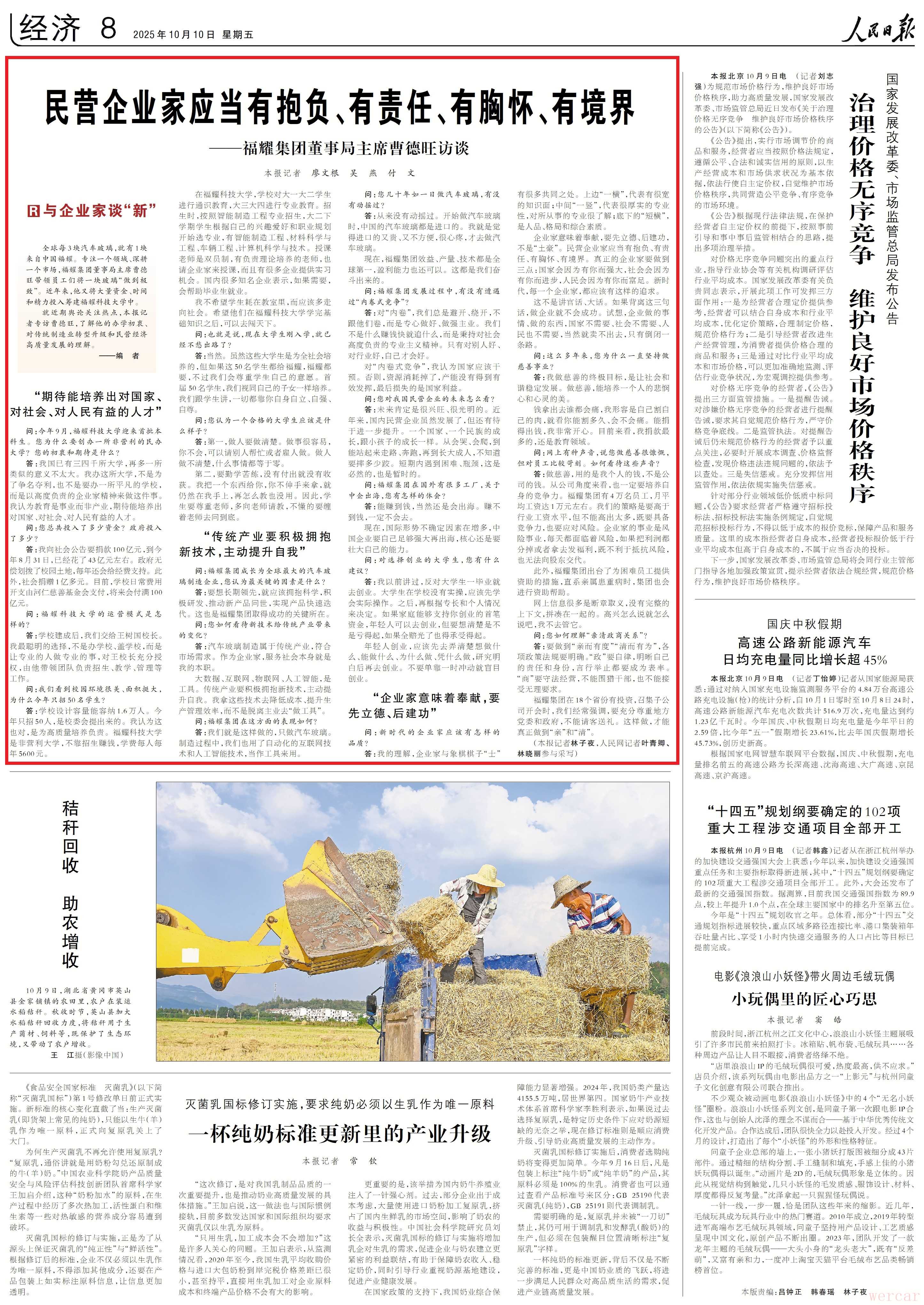 就近期舆论关注热点,人民日报记者专访曹德旺,了解他的办学初衷、对传统制造业转型升级和民营经济高质量发展的理解。