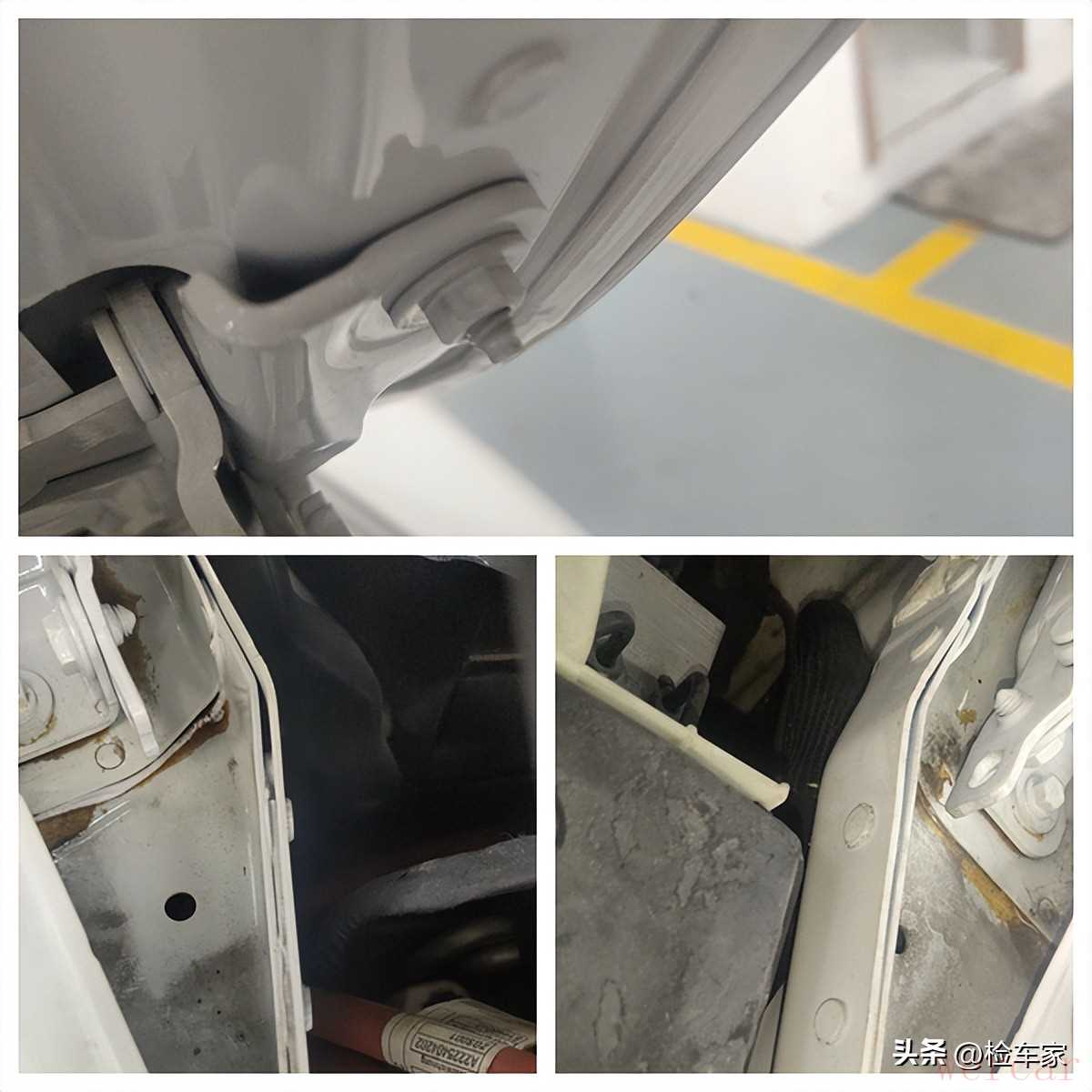 继续我们的检测,机盖和两边叶子板的固定螺丝没有拧动痕迹,螺丝也没有后喷漆的情况,说明配件没有拆装更换!两边的叶子板骨架也没有变形维修痕迹,外层都没有损伤,里面自然完好!