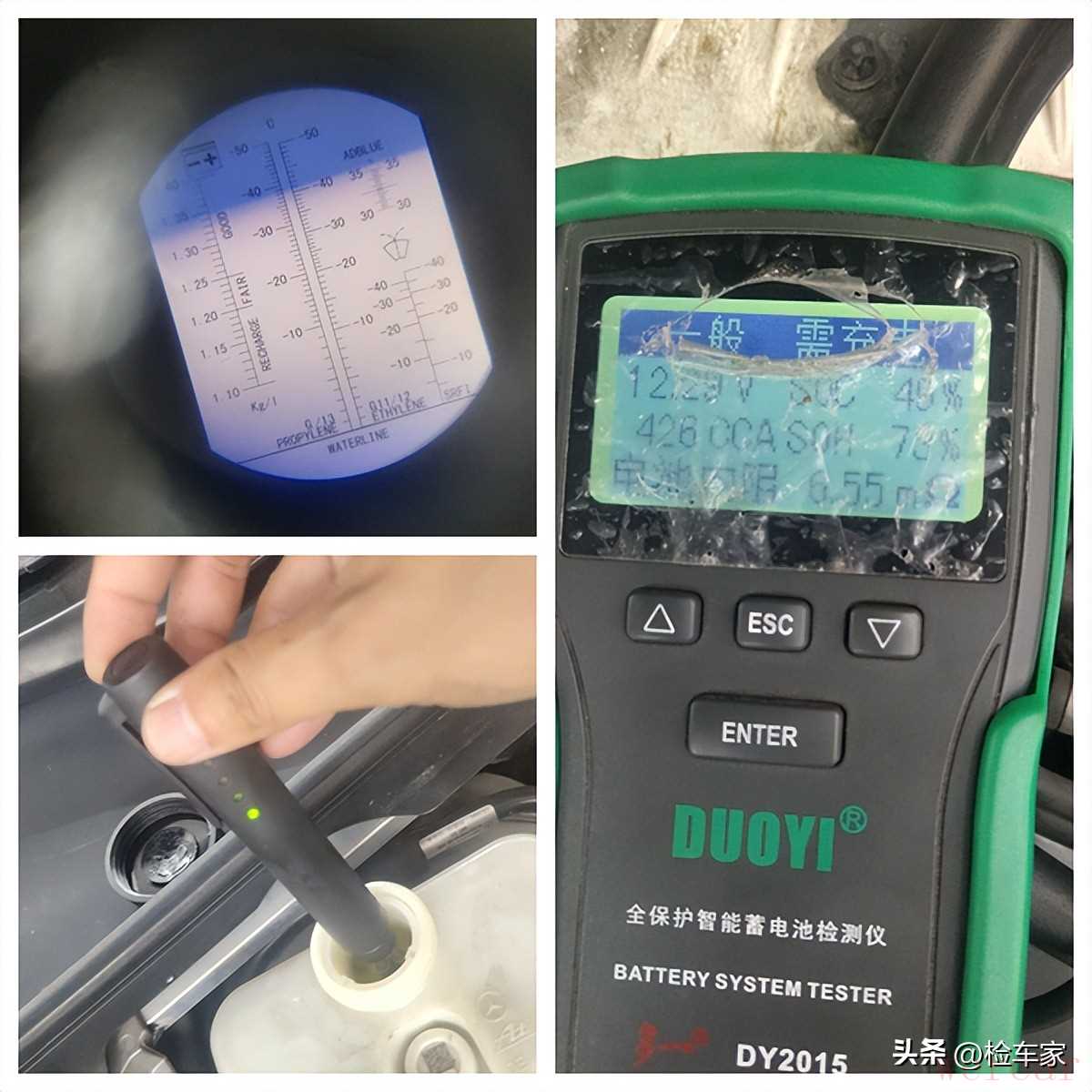 防冻液的成色还很清澈,冰点也正常,估计才换过不久!刹车油也没有变质,估计也是更换过的,毕竟七年多了!电池亏电,问题不大!通过油水方面的检测,也能猜到前车主在保养这一块还是比较尽职的!