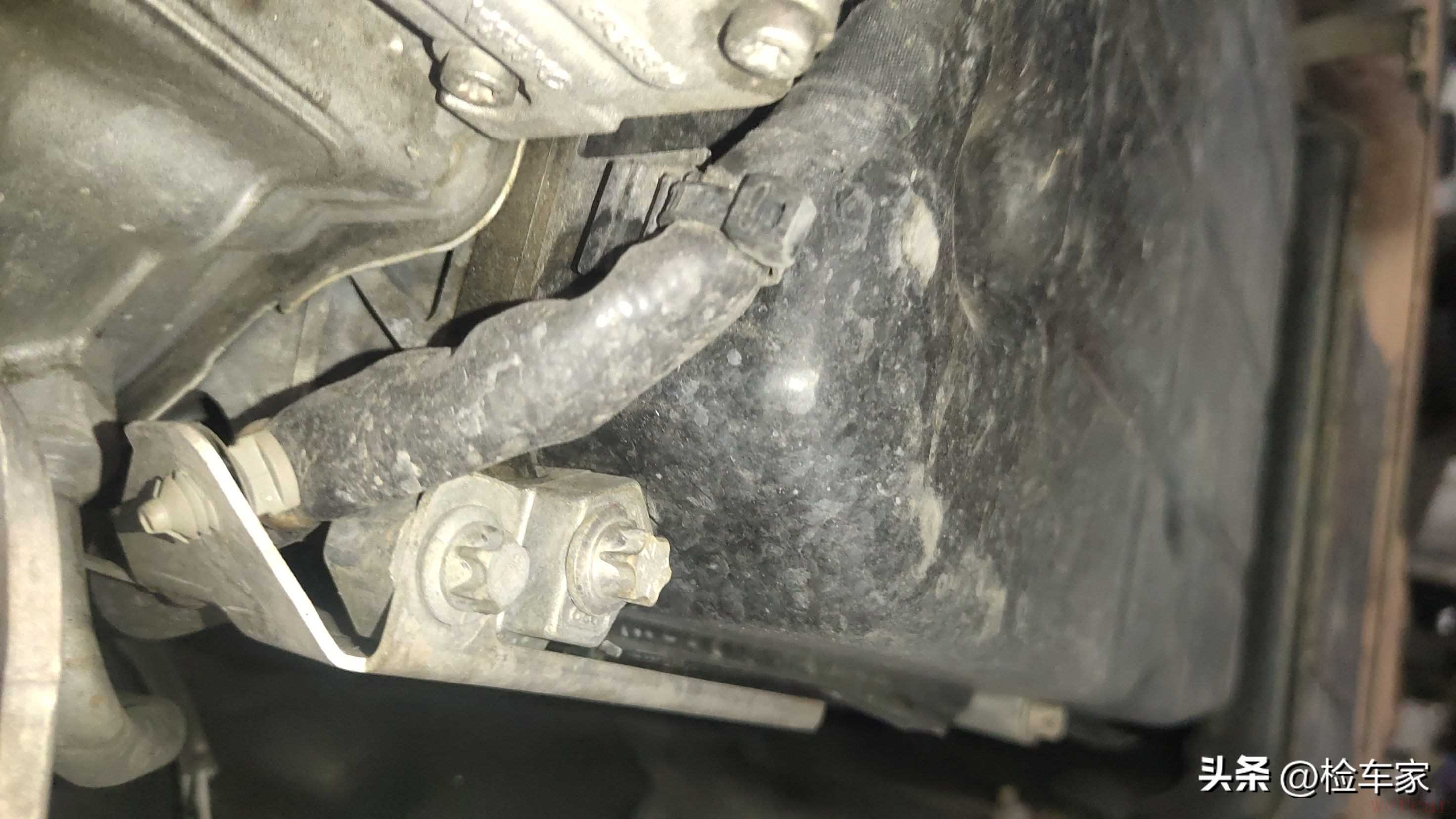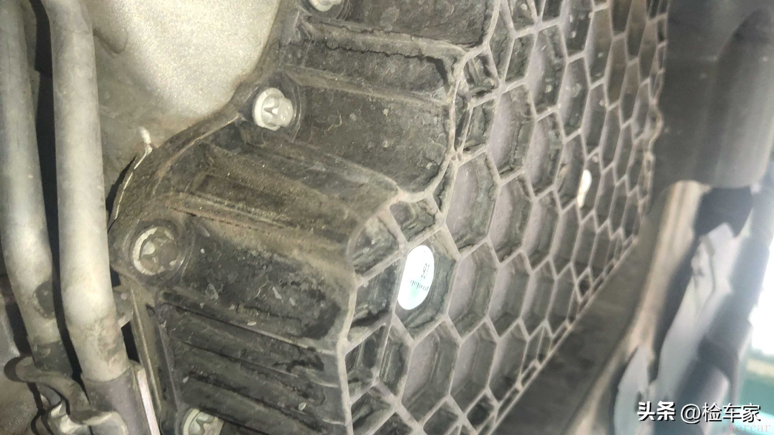 发动机和变速箱绞合处的螺丝也没有拆装拧动痕迹,但是曲后油封渗油了,变速箱通风口位置也发现了渗漏的油渍,还好不是直接漏油,后期可以边使用边观察,如果没有进一步恶化就可以不管它,毕竟维修的成本是比较高的,主要是工时费高!
