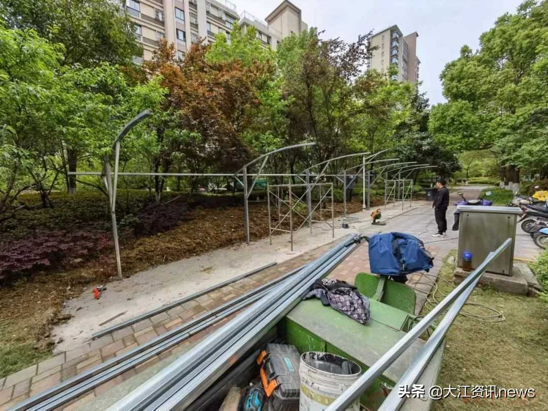 ▲柏庄春暖花开小区正在建设的充电车棚。