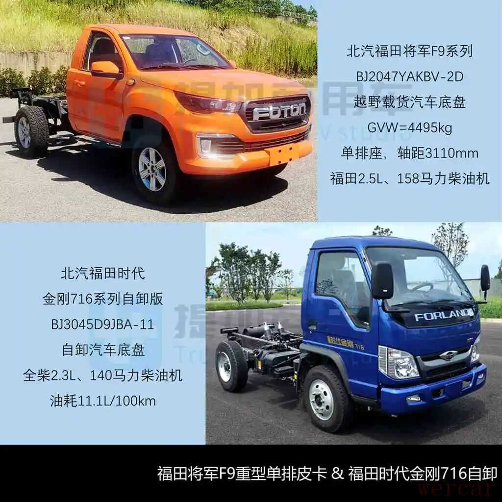 - 3字头自卸类两款均由北汽福田时代系列,包括金刚S1和716两个系列。2字头越野类两款分别为福田将军F9重型皮卡,以及湖北三环创客自卸版STQ2101L03Y2E6。