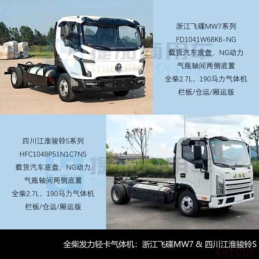 - 今年5月期,北汽福田首次申报了搭载全柴F28T-190E63气体机的时代领航G6系列BJ1044V9JCA-58,并于8月期申报了仅采用LNG动力的BJ1044V9JCA-51;而上汽大通8月期则申报了仅采用CNG动力的跃进超越H系列SH1043ZGCDWZY1,配装全柴F28T-190E60气体机,两款机型可做对照。据介绍,全柴F28系列还与一汽解放、东风集团等头部企业开展合作,正在加速行业燃气轻卡(尤其是LNG)的推广进度,后续可进一步关注其表现。