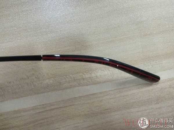 2镜架是否掉漆,我再镜架的铰链位置观察了一下,边缘喷漆比较粗糙,用指甲触碰漆还是容易脱落的。