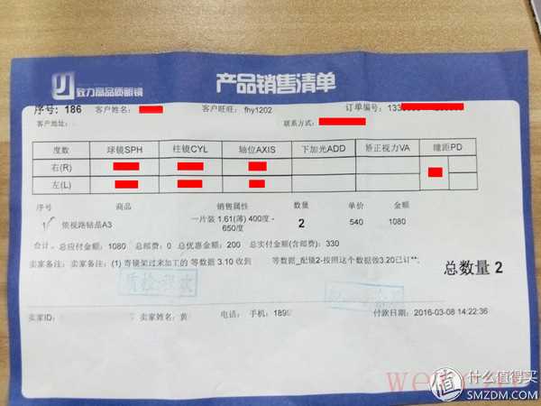 订单上是按照验光后提供给客服的数据加工的。