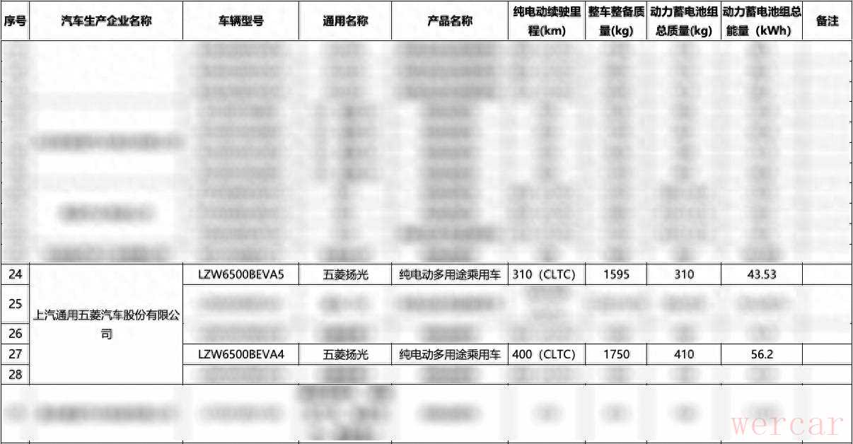 五菱扬光纯电版新车型动力电池及续航信息