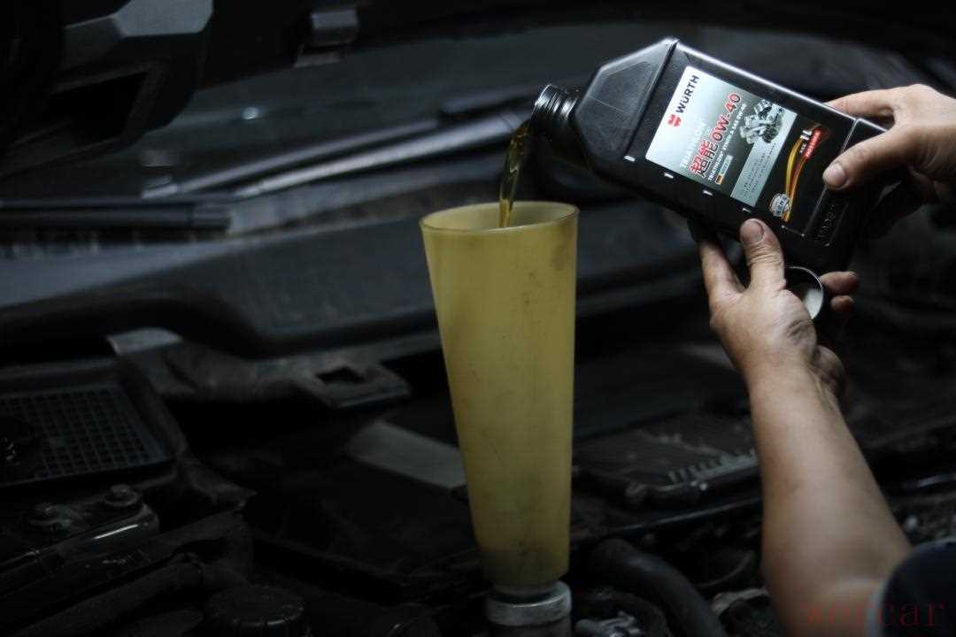 放干净后,重新加入机油,因为车主在哈尔滨,要注意低温流动性能,机油型号选0W-40比较适合。
