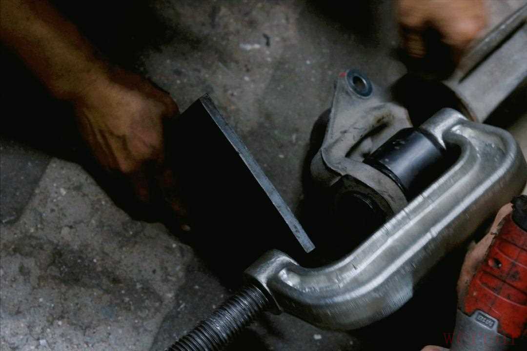 这是更换摆臂球头的画面,一个人没法搞定的。