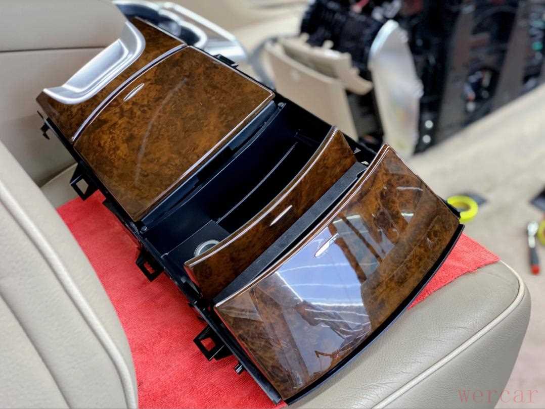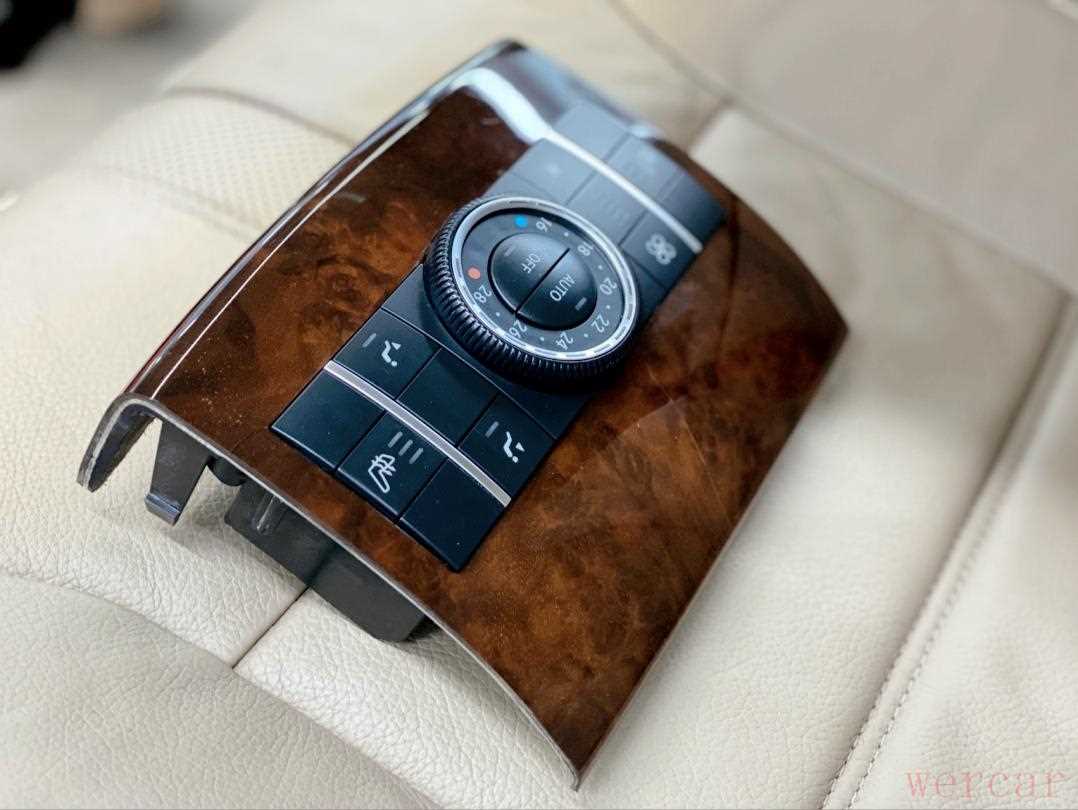 再看中控面板,右侧的座椅通风按钮有个洞,这个没法修,只能换了,桃木件也已经刮花了。
