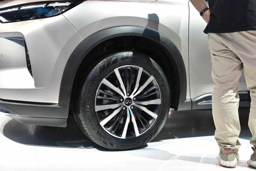 全新英菲尼迪QX60采用悬浮式车顶设计,配合车窗边缘的镀铬装饰,能够在一定程度上抵消臃肿感,此外20英寸双色花瓣造型轮圈也足够美观,轮胎采用马牌CrossContact RX系列,规格为255/50 R20。