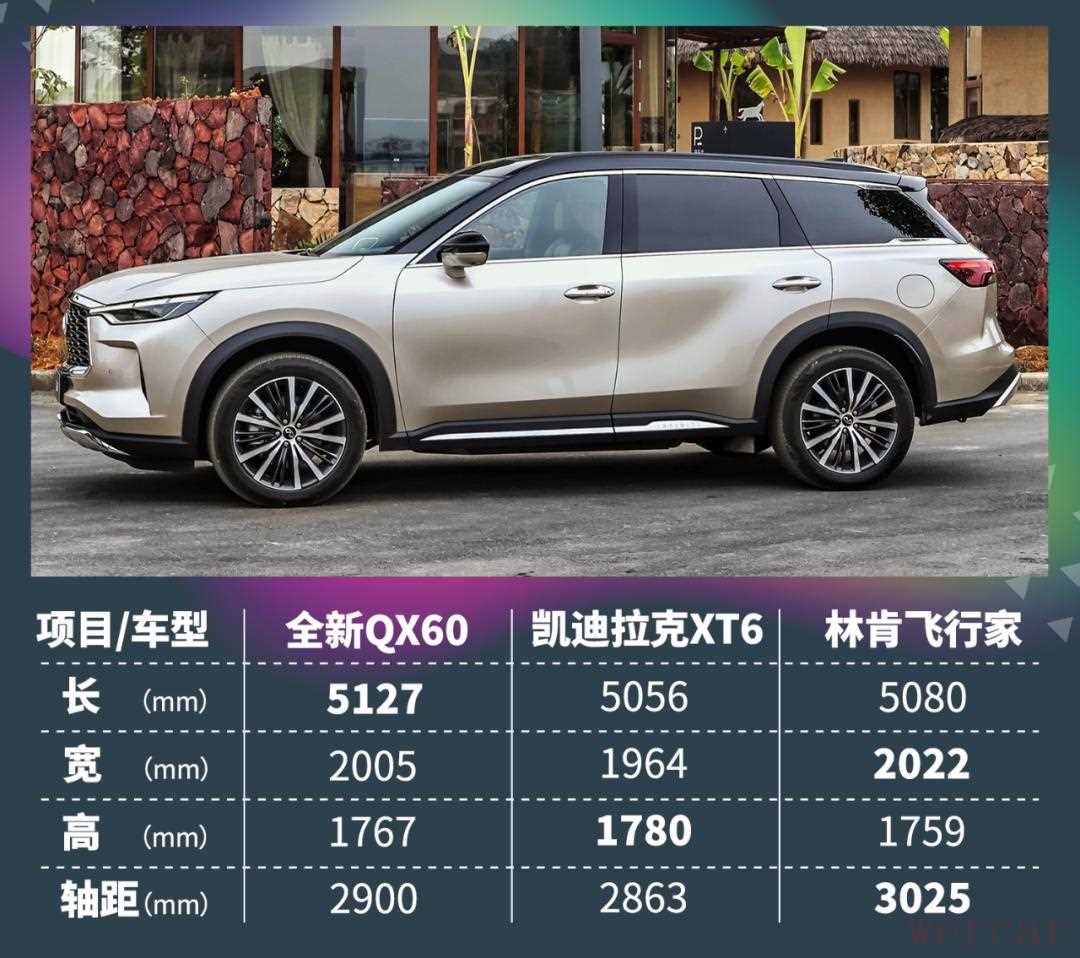 尺寸方面,QX60作为一辆中大型SUV,车长已经突破了5.1米,相比竞争对手凯迪拉克XT6和林肯飞行家都要更长一些。不过相比采用纵置后驱平台的飞行家来说,采用横置平台的QX60在轴距上要稍短一些。