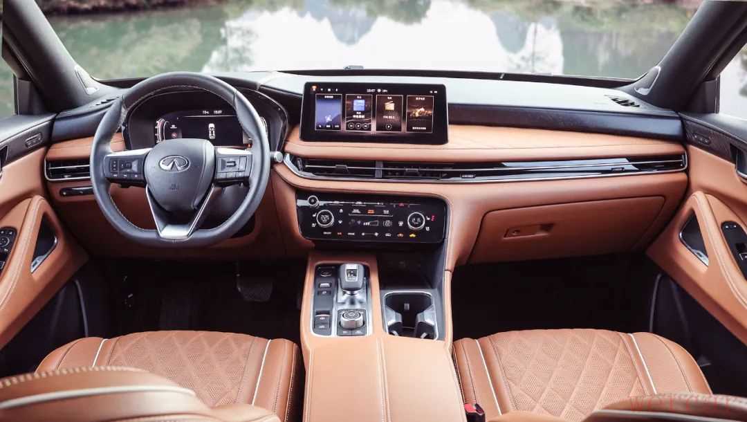 内饰设计上,QX60并没有像欧洲车那样一味追求大屏风格,而是保留了大量的实体按键,并且内饰线条十分丰富,搭配大面积的皮质包覆,颇有一股独特的东方豪华韵味。