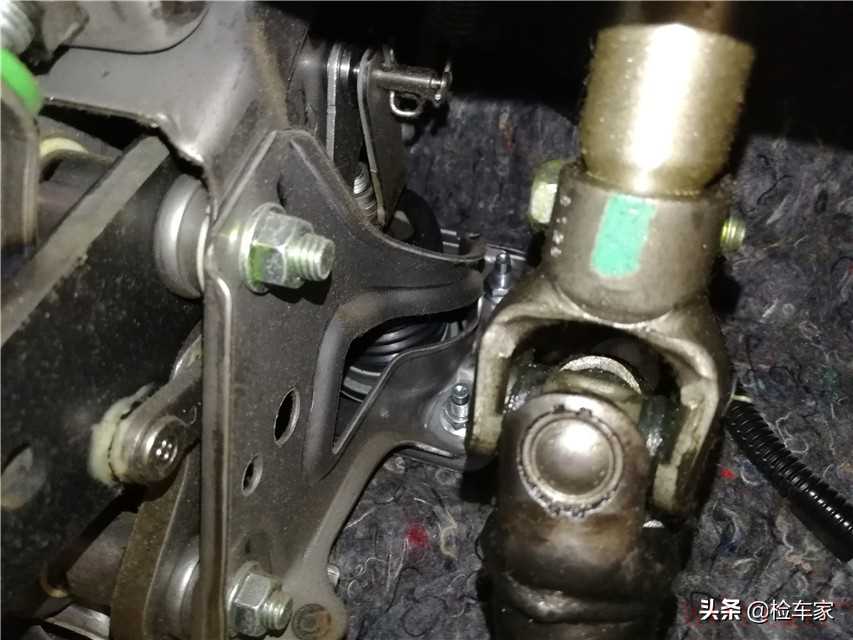 方向管柱及周边金属部件没有锈蚀的痕迹,地毯缝隙也没有泥沙等异物,管柱与方向机连接螺丝未见拆卸。