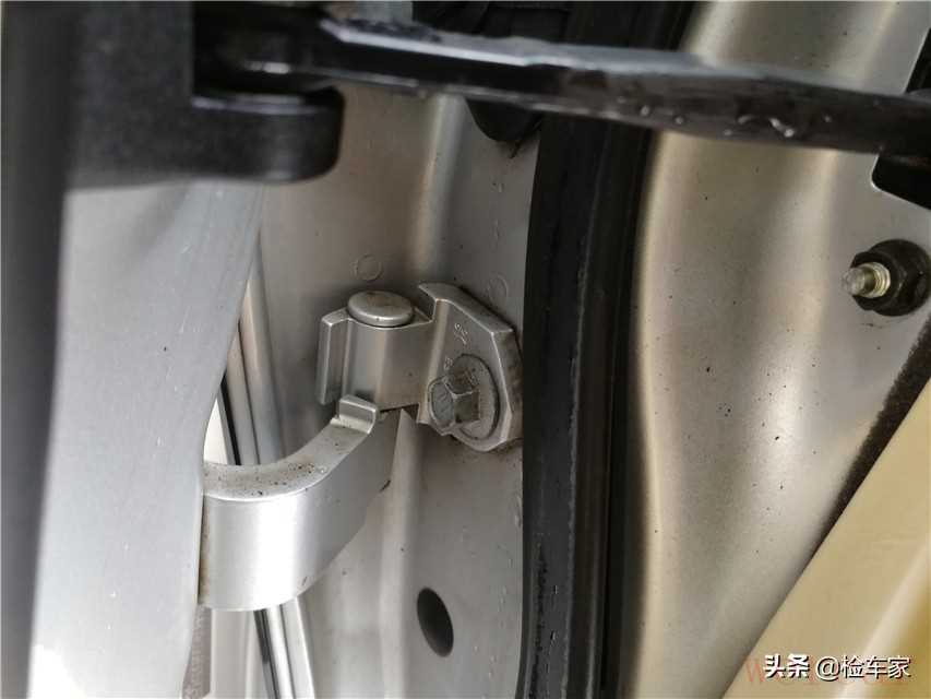 左后车门的铰链以及固定螺丝没有发现拆卸痕迹,说明只是剐蹭造成的喷漆,并不严重。