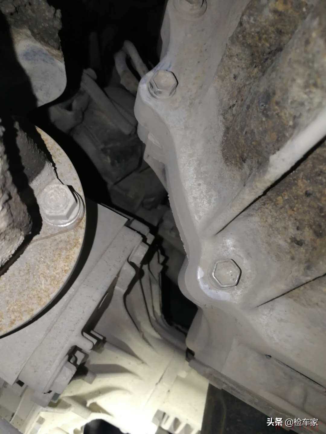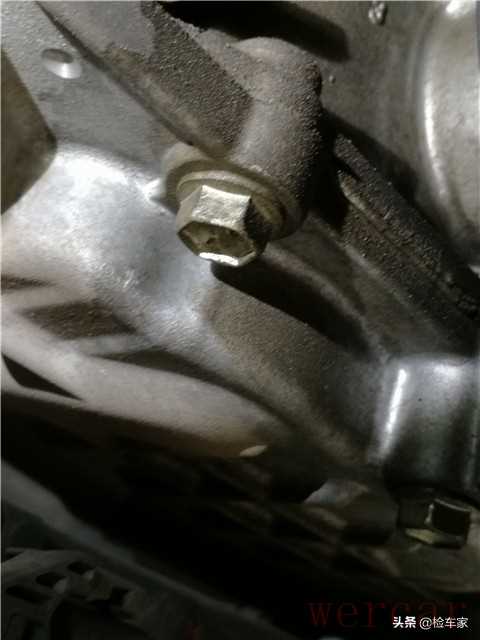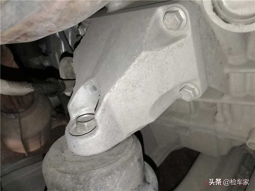 发动机变速箱连接螺丝未见拆卸拧动痕迹,变速箱以及发动机下部的机脚支架也是原车状态,可以排除此车发变分解维修的情况。