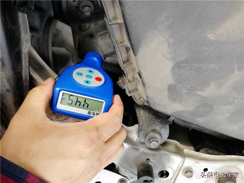 两前减震器塔顶螺丝没有拆卸痕迹,测了漆面数值也在正常范围内。