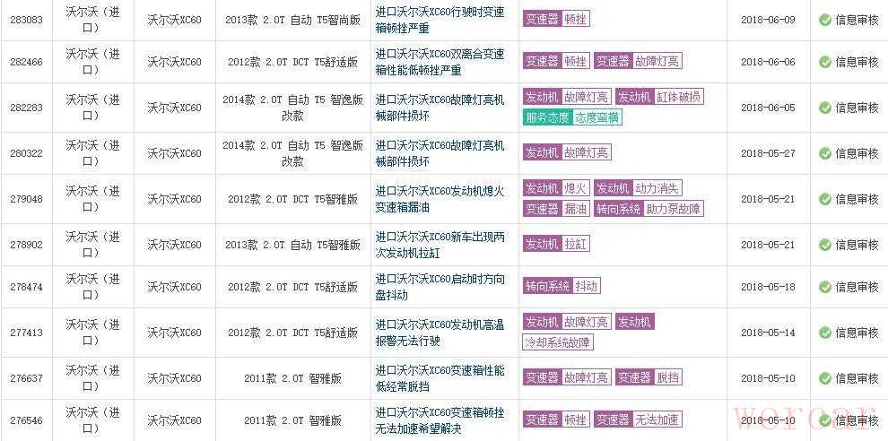目前,在汽车投诉网、车质网等第三方投诉平台上,关于沃尔沃XC60变速箱问题的集体投诉非常多,而且大多数都停滞在厂家处理或信息审核阶段,没有得到解决。就此问题,汽车天涯致电了沃尔沃官方客服,但客服表示只能记录反馈,没有相关信息可以回应。