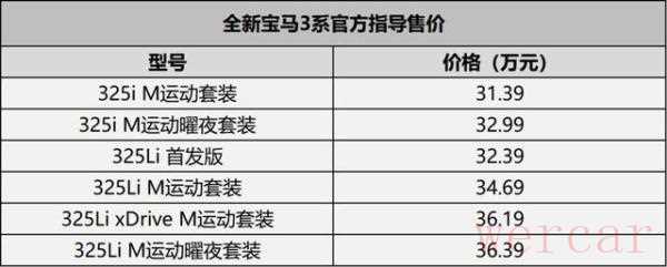 全新宝马3系官方指导售价,两款短轴版车型,售31.39-32.99万元,四款长轴版车型,售32.39-36.39万元。